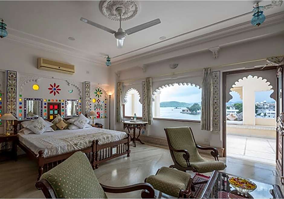 Spacious suites decorated with beautiful local handicrafts. They feature a large and comfortable seating area and modern bathroom facilities. Featuring a private terrace, the suite offers views of the Pichola lake.